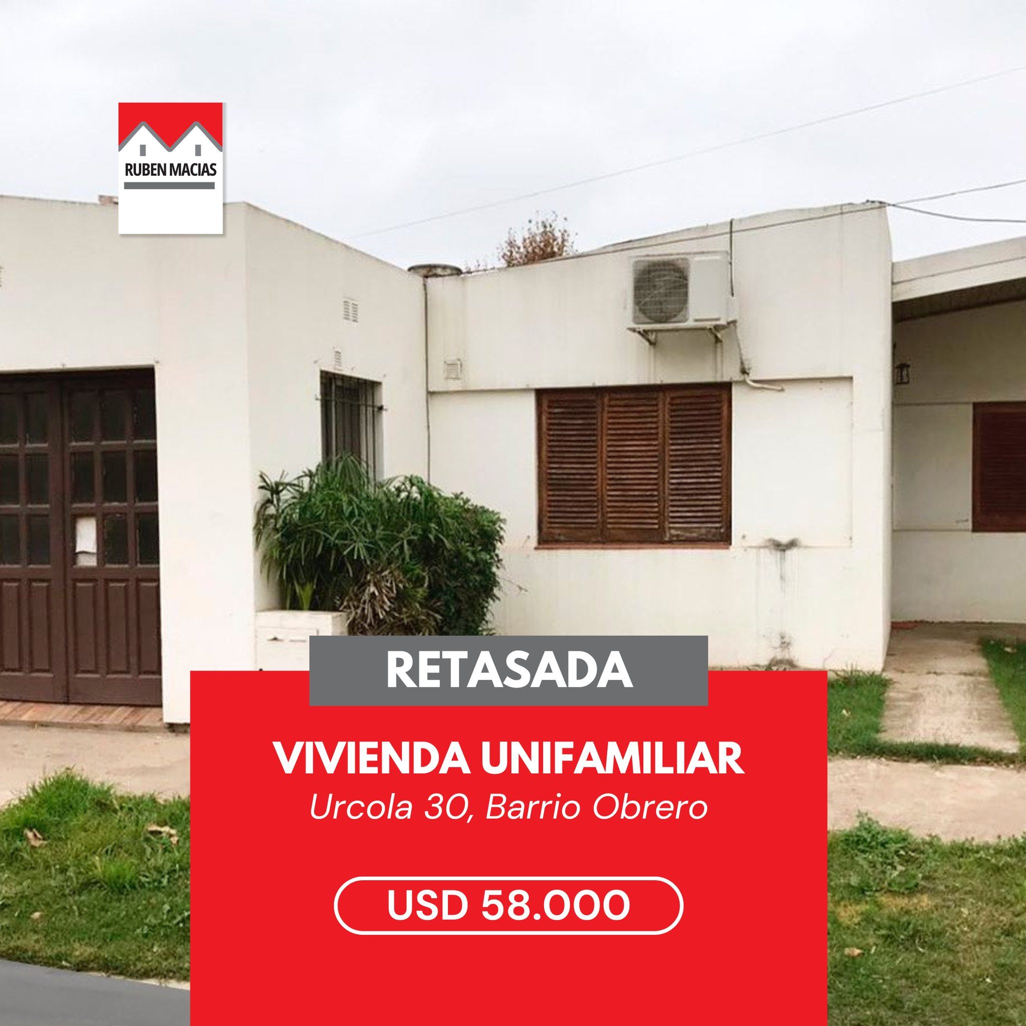 ¡RETASADA! Vivienda unifamiliar en excelente estado Ubicación: Urcola 30, Barrio Obrero Lote de 250 m² | Superficie construida de 100 m² Living Comedor Cocina equipada 2 dormitorios con placard Baño completo Lavadero integrado Cochera cubierta Amplio jardín Contactanos: Las Heras 154, Lincoln (02355) 432504