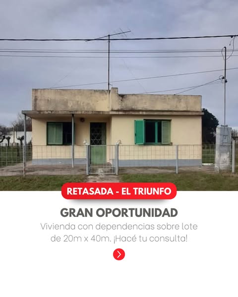 OPORTUNIDAD RETASADA El Triunfo Gran oportunidad de inversión Vivienda con dependencias sobre lote de 20m x 40m ¡Consultanos! Las Heras 154, Lincoln (02355) 432504