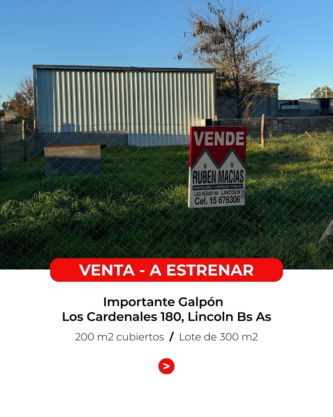 ¿Buscás un espacio amplio y bien ubicado para tu proyecto o empresa? Te presentamos este galpón ubicado en Los Cardenales 180, a pocos metros del acceso principal de Lincoln, una excelente oportunidad para quienes buscan comodidad y buena ubicación. Cuenta con 200 m² cubiertos y un entrepiso de 50 m², ideales para oficinas, depósito o […]