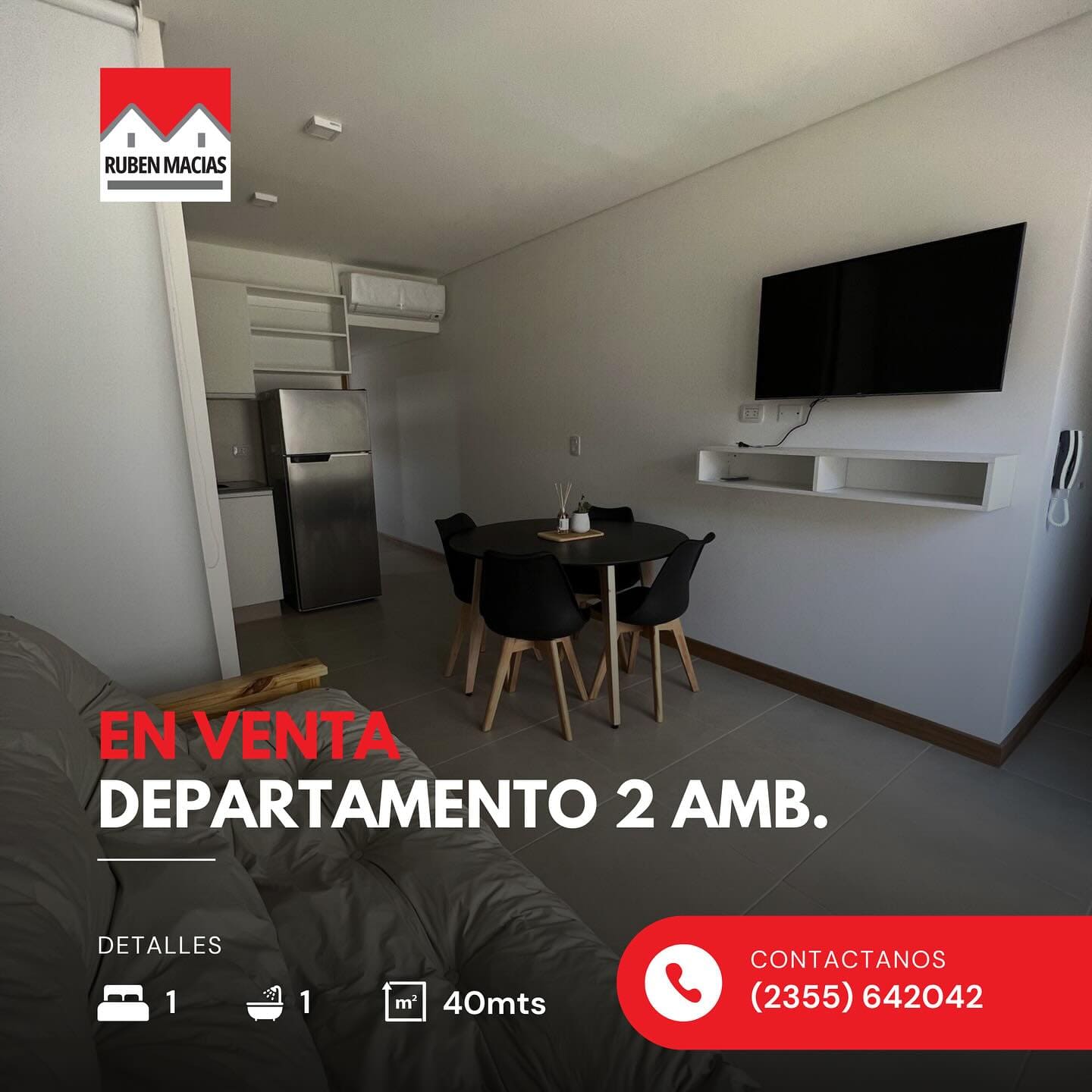 ¡EN VENTA! Departamento de dos ambientes en la Ciudad de Lincoln Zona céntrica, a 50mts de la Plaza Rivadavia. 40mts2 Completamente amueblado 1 año de antigüedad ¡Excelente oportunidad en el corazón de la ciudad para alquiler temporario!