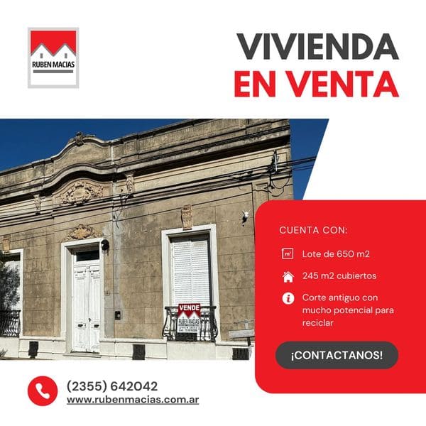 ¡EN VENTA! Importante vivienda céntrica en excelentes condiciones para reciclar Ubicación privilegiada Lote de 650 m2 245 m2 cubiertos Corte antiguo con mucho potencial 4 dormitorios Amplio living Comedor Cocina Baño Jardín ¡La oportunidad perfecta para renovar y personalizar tu hogar en el corazón de la ciudad!